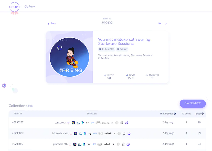 I have been giving away my personal POAP event badges (with my jpeg drawings) using the ENS card we distributed at the last Devcon. 50 people collected my POAP during my visit to Tel Aviv, and 70% of the recipients set their primary names. Again it shows the high ENS and crypto literacy among the participants.