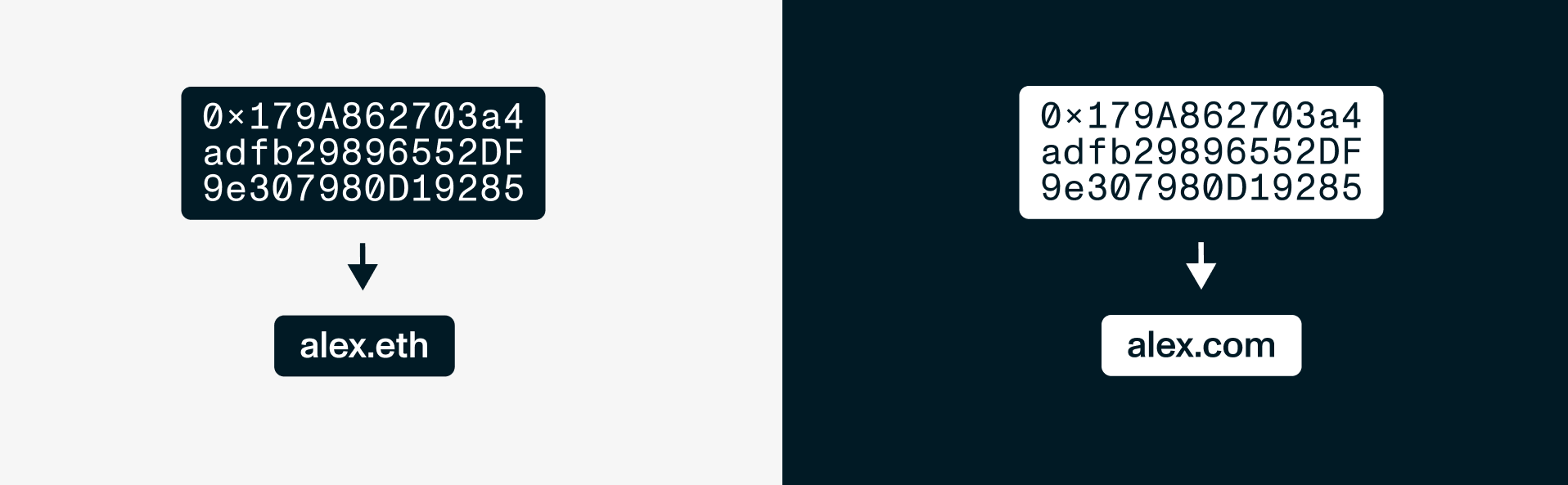 Crypto wallet addresses are inherently complex and difficult to share. ENS solved this back in 2017 by turning these complicated addresses into human‐readable names with the .eth suffix.