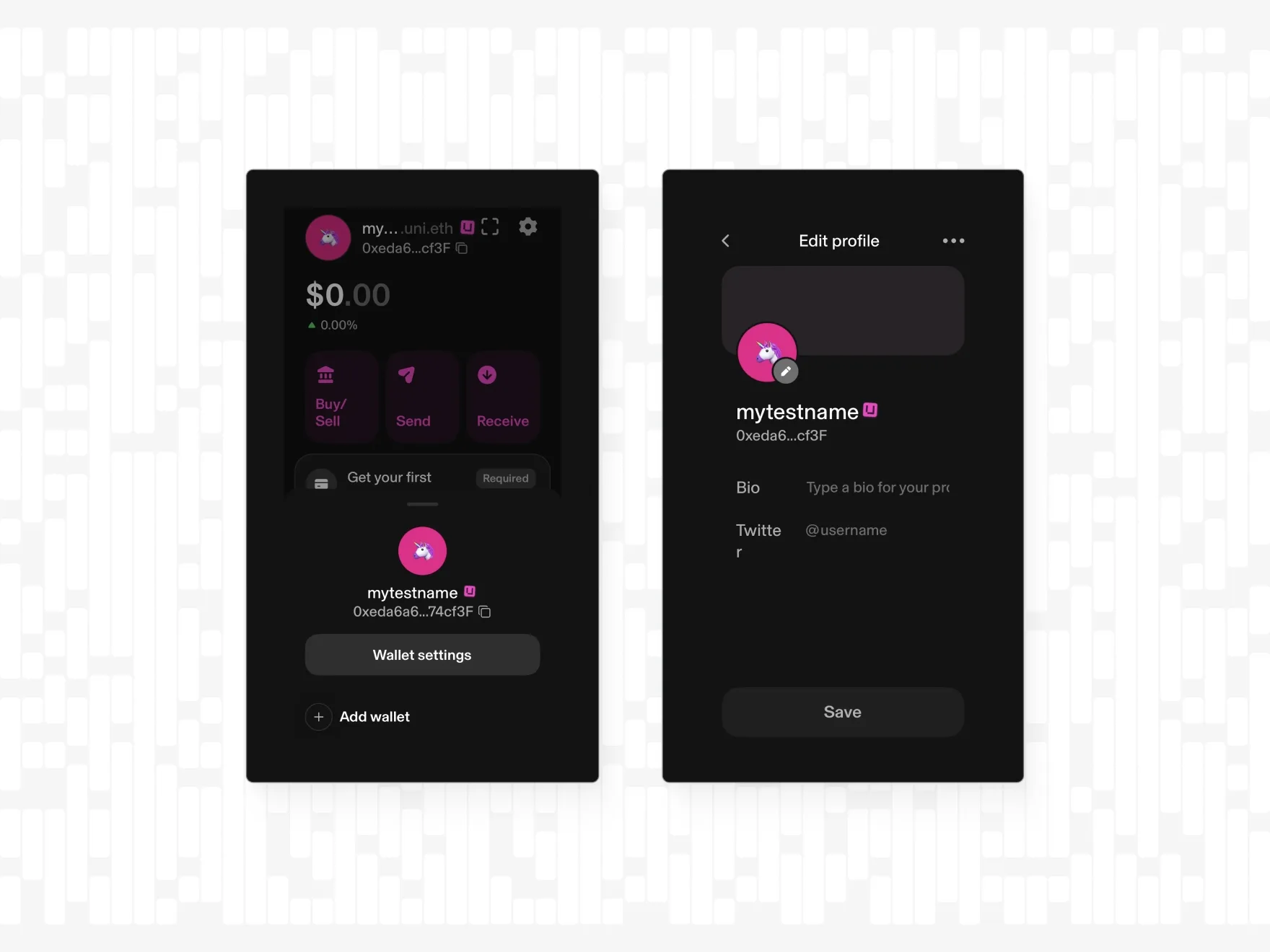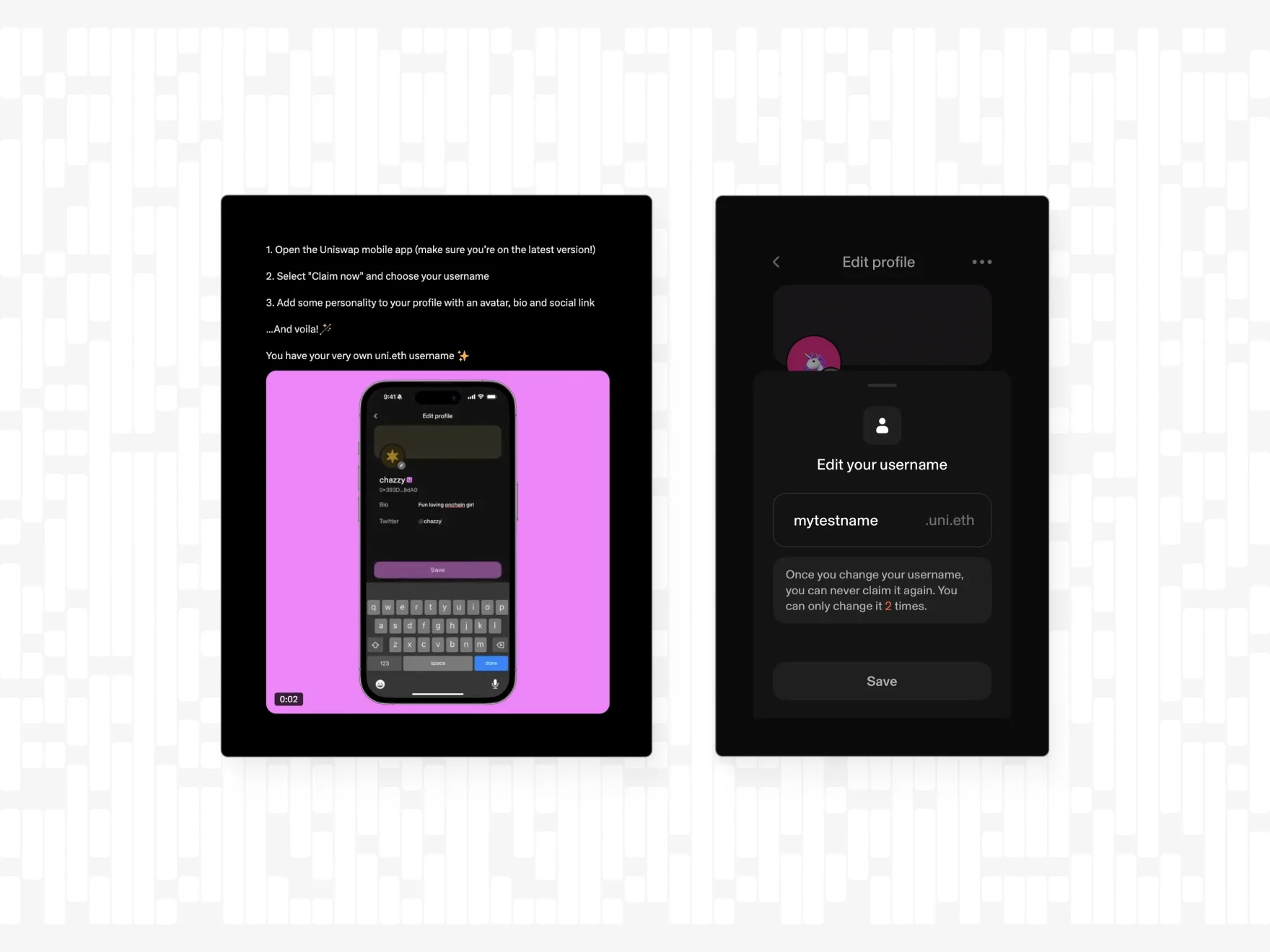 • In-app flow, within the Uniswap mobile app and browser extension to allow users to claim and customize their uni.eth usernames